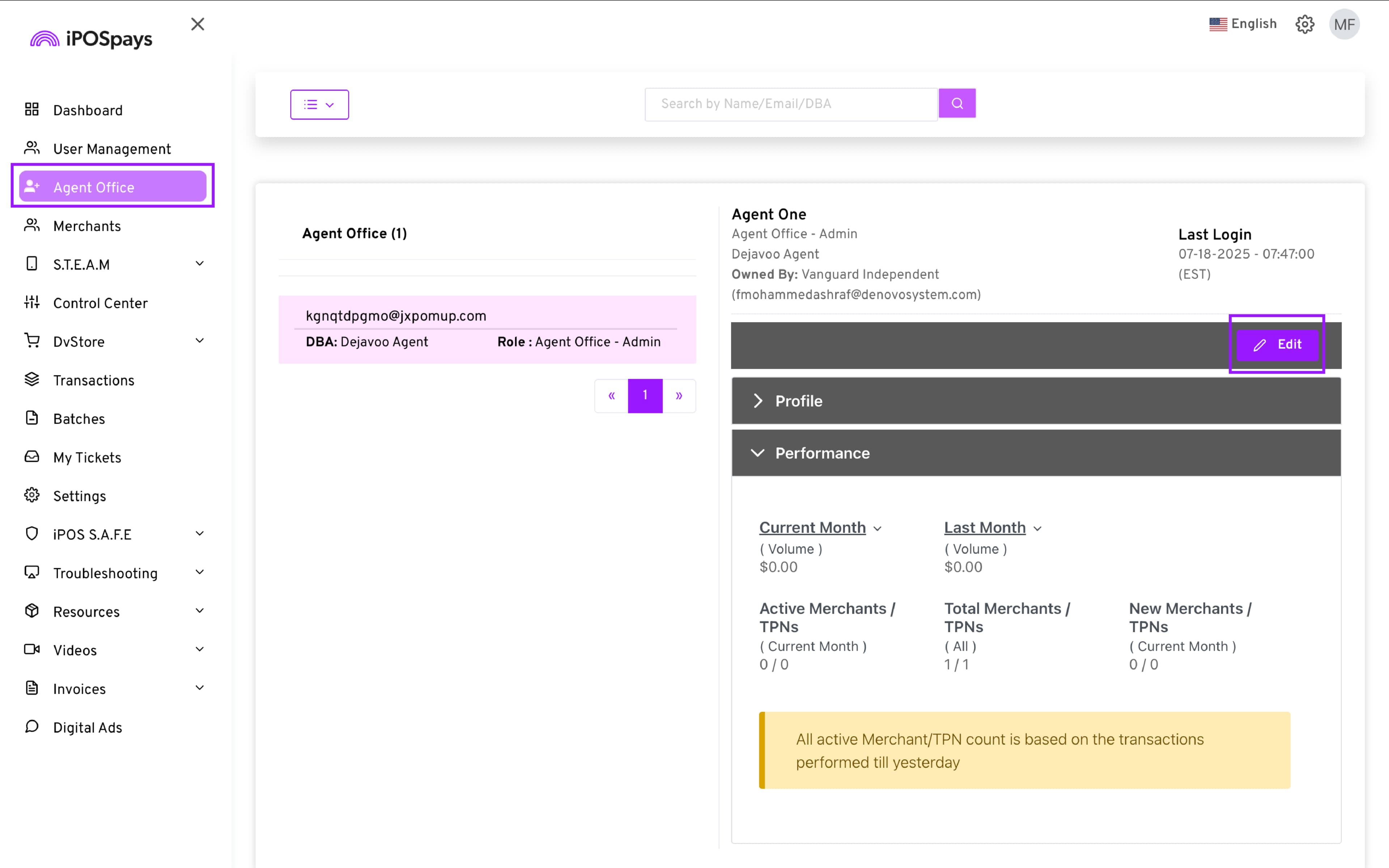 A new Edit Fee privilege has been introduced to give better control over merchant fee management. This option allows administrators to define whether an Agent Office can modify merchant fees.