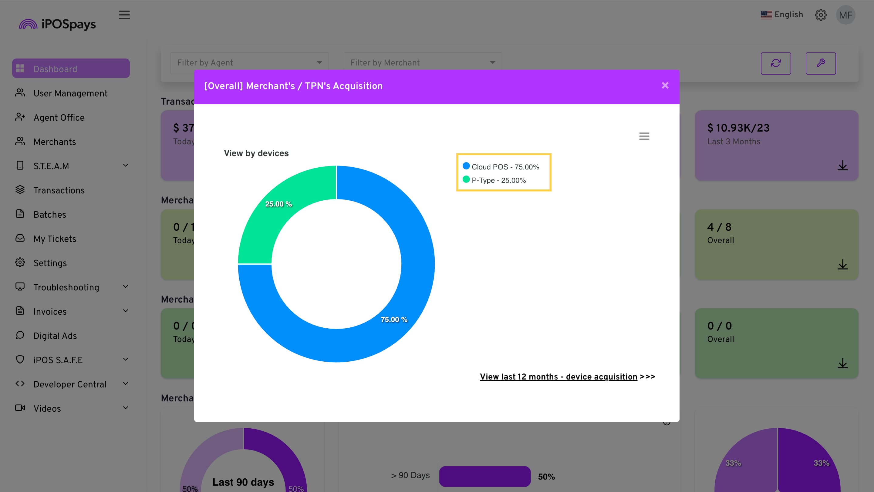 Now, the “View By Device” filter in the “Merchants Boarding” card for ISOs on the iPOSpays Dashboard can be displayed as a pie chart. This will provide a clear, device-wise breakdown of the onboarded merchants, offering more detailed insights into device usage trends.
