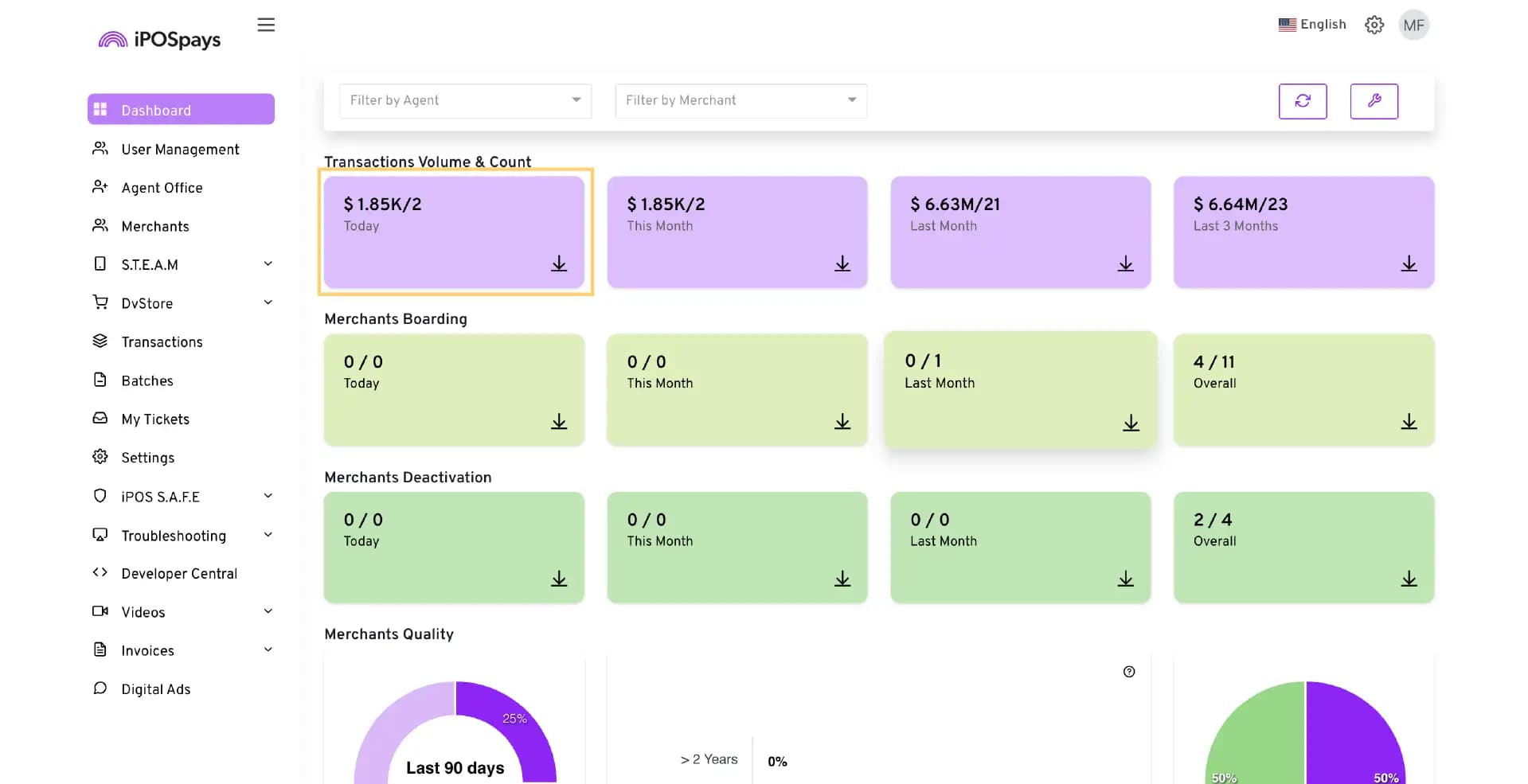 The Today tab that appears on the Dashboard module of the iPOSpays portal did not support an expanded view and would simply display the transaction count for the day on the screen itself. With this update, when you click on the tab, an expanded view will appear with more filtered data options such as: